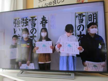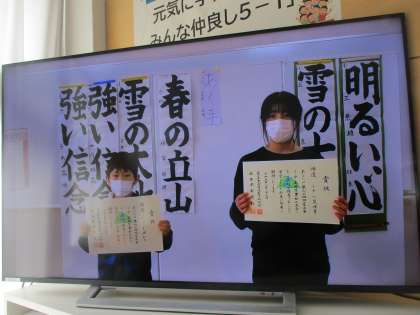 ピアノのコンクールや書初大会で表彰された子供の受賞伝達がありました。