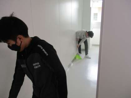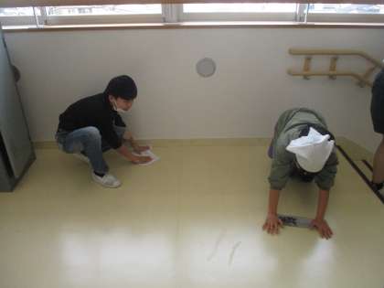 感謝の気持ちを校舎に伝えています。隅々まできれいにすると、心もすっきりしますね。いよいよ卒業まであと2日です。