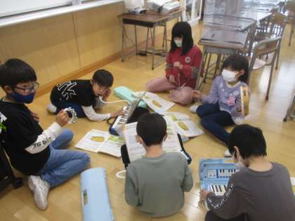 今まで学習した曲の中から、グループで1曲選び、みんなで合奏しました。