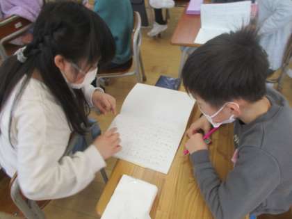 渡す前に他の友達と誤字や不備がないか、お互いに確認をしました。