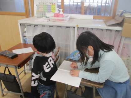 隣の席の友達の「すてきなところ」を見付けて、メッセージを書きました。