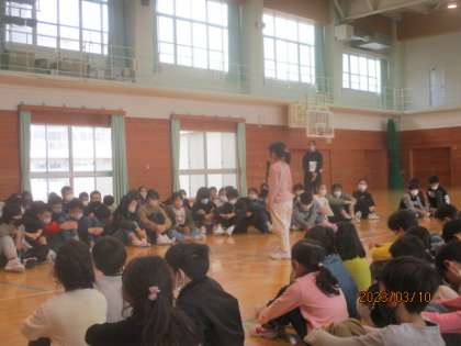 今までたくさんお世話になった6年生さんに、「中学校がんばってね集会」を通して、感謝の気持ちを伝えました。たからさがしやおにごっこを通して、交流を深めたり、「子犬のマーチ」の演奏を聴いてもらったりしました。6年生さんと過ごせる残りわずかの時間を、大切にしていきたいですね。