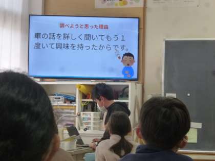 3学期に入ってスタートしたマイプロジェクトの発表を行いました。自分で作曲をしたり、富山のよさを伝えるガイドブックを作ったりするなど、さまざまなことにチャレンジしていました。友達の発表を聞き、「新しいことを知れてよかった!」「友達が頑張っているところが見られてよかった」など、友達の頑張りを認め合う姿がたくさん見られました。
