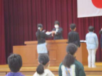 教室に戻った後は学活の時間に、3学期の出来事を振り返ったり、子供たちに修了証を渡したりしました。