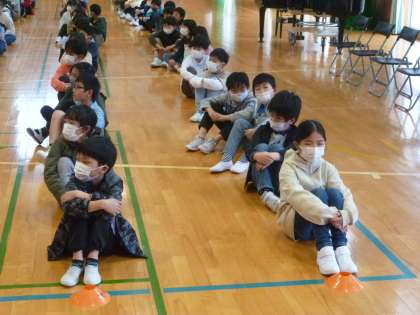 6年生に進級した子供たちは、朝から始業式の体育館準備を一生懸命行っていました。