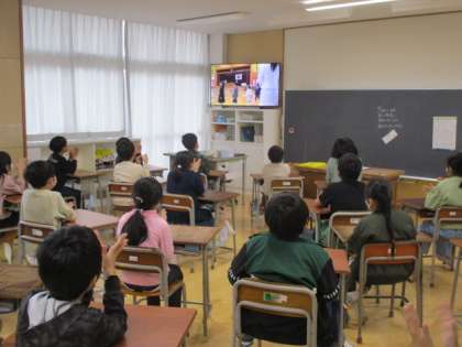 新1年生が入学してくる様子を、校内テレビ放送を通して教室で参加しました。今年もたくさんの1年生が入学し、4年生も喜んでいました。