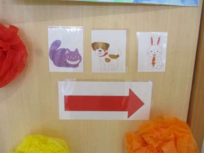 1年生初日は、教室に入るまでの道順に各クラスのシンボルになる動物をはっておきました。子供たちはその目印を見ながら、間違えずに教室に着き、朝の用意をしていました。
