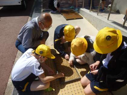 地域の皆様のお話を聞きながら、種まきを行いました。