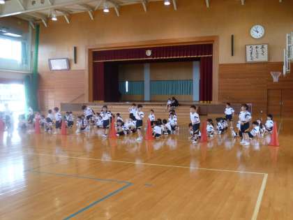 番号順に並んだり、2列に並んだり、いろいろな並び方を練習しました。素早く、指示通りに並べるようになりました。さすが1年生です。
