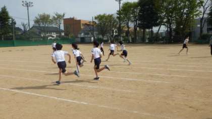 今日は、50m走の測定を行いました。走るときのポイントを2つ教えました。一つは目線について、もう一つは手の振り方についてです。子供たちは次の測定に向けて早くなろうとポイントを真剣に聞き、自分のものにしていました。