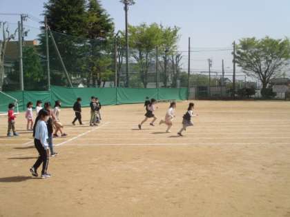 青空が広がる中、元気いっぱいに走り回っていました。もっと足が速くなるとよいですね。