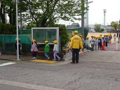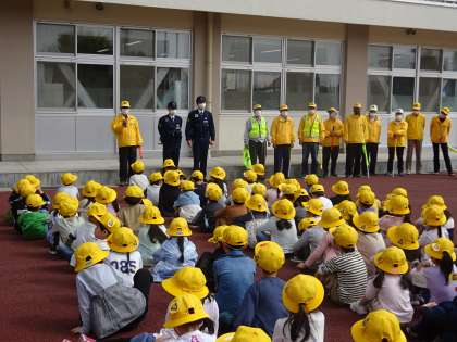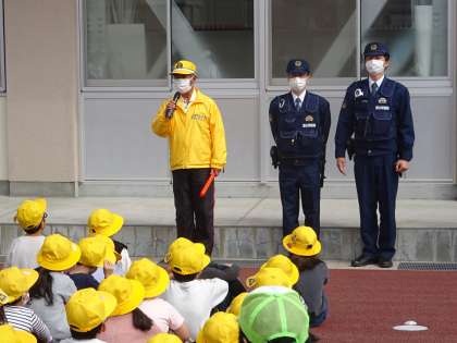 奥田交番のおまわりさんや交通安全協会奥田北支部のみなさんと一緒に、