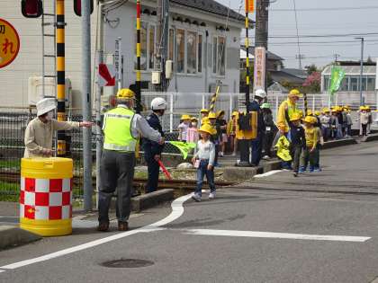 踏切は道幅が狭くなっているので特に注意が必要です。