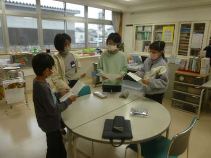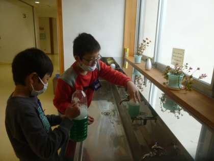 保健委員会では、放送の原稿を読む練習をグループで行ったり、シャボンネットを協力して補充したりしました。「こぼれないようにね」と声を掛け合って丁寧に仕事を進めることができました。