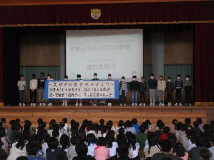 スローガンを大切にし、みんなの笑顔でたくさんのひまわりの花が咲くよう、今年も児童会活動を支えていきます。