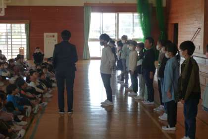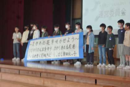 「笑顔の花を咲かせよう」を大切に、1年間、児童会活動を頑張っていきましょう。
