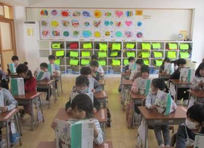 1年生 国語 音読 公開日 2023/04/27 更新日 2023/04/27 1年生 音読の際には、教科書を両手で持ち、立てて読むように指導しています。 「読む姿勢」というと、子供たちは素早く教科書を立て、音読の姿勢をとります。