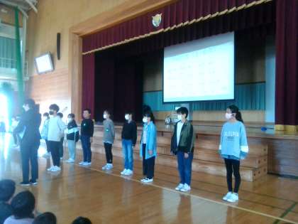 児童総会では、各委員会の抱負を真剣に聞いていました。「ひまわり憲法を守りたい」など、たくさんの4年生が振り返りで発表をしました。また、学級代表も全校児童の前で紹介されました。