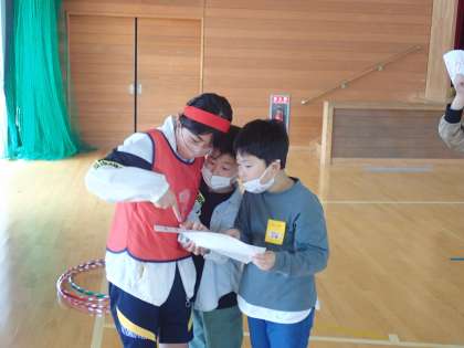 5年生は高学年として、班のカードをもち、2〜4年生に班の場所を知らせたり、分からない人がいると、調べて案内してあげたりしました。