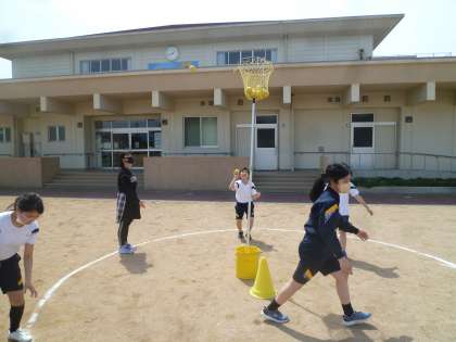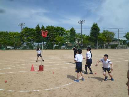 1、2年生の時に運動会で行った玉入れを、6年生になって久しぶりにしました。