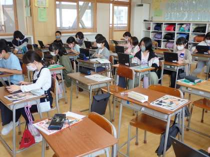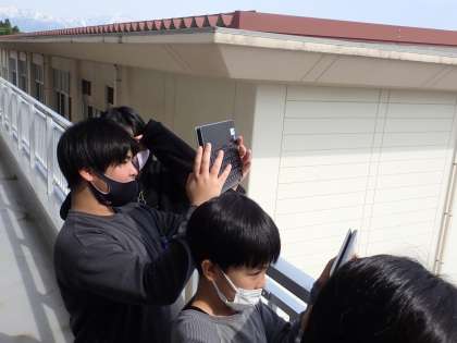 クロムブックに写真を取り入れ、予想した天気について考えをまとめました。