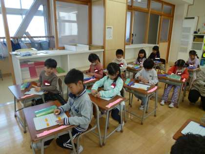算数ボックスのブロックを使って、色々な数のブロックを並べました。「並べるの楽しい!」「ちゃんと聞いて並べることができたよ!」色々な数を並べることができましたね。