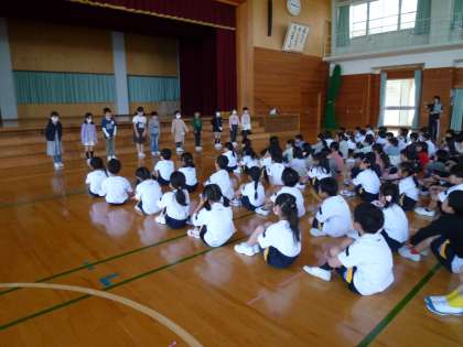 2年生に学校を案内してもらいました。いろいろな場所をまわり、クイズを解きながら楽しく学べましたね。