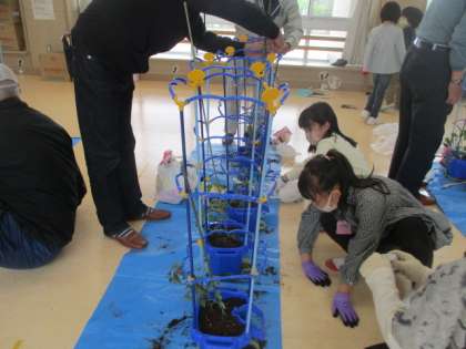 地域の方と野菜の苗を植えました。「家族のためにがんばって育てたい」「とても大変だったけど楽しかった」と満足そうでした。毎日のお世話をがんばっていきましょう!