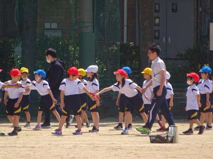 ぐんぐんタイムにリレーの練習をしました。