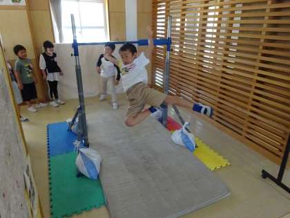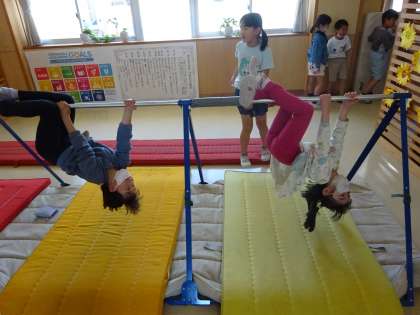 玄関奥の鉄棒コーナーもいつも大賑わいです。