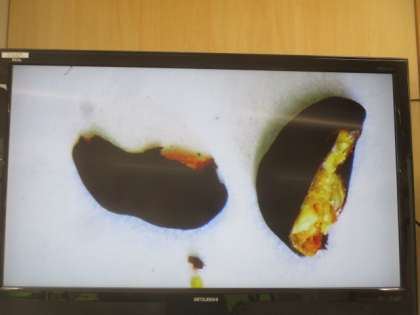 前回のあさがおの種の観察をしたときに、種の中はどんなふうになっているのか気になっていた子供たちとさわって観察してみました。予想では、「小さい葉っぱがある」や「茎や葉が詰まっている」、「粉がいっぱい」など様々な意見が出ていました。