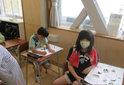 図画工作科「ひらいて広がるふしぎなせかい」の学習で、カッターを使って窓を開きました。窓を開いた後は、マジックで広がる前の世界を描いていきました。