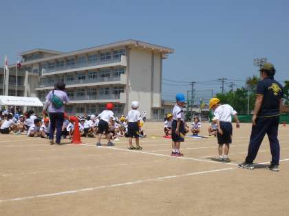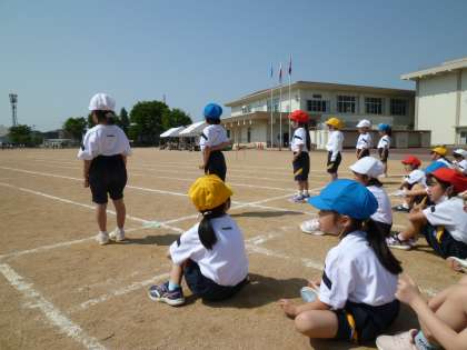 運動会の予行練習では、実際に玉入れをしたり、応援をしたりしました。