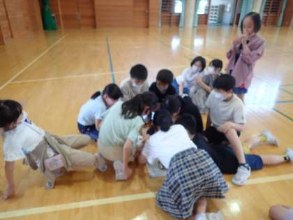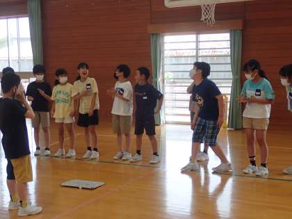 運 動会まで引っ張ってくれた団の6年生に向けて、5年生からのお礼のエールを考えました。案を出し合い、声を出して形にしていくことで、団のまとまりや仲間とのつながりを感じ、生き生きとした表情があちこちに見られました。