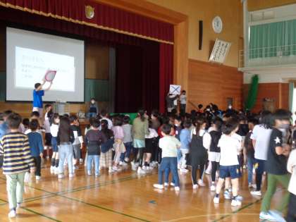 今日のわくわくタイムは、生活委員会による「奥北ワクワクフェスティバル」がありました。あいさつの仕方やひまわり憲法についての○×クイズがあり、3年生も楽しく参加していました。元気なあいさつをしたり相手にやさしくしたりなど、これからの生活をよりよくできるよう考えるよい機会となりました。