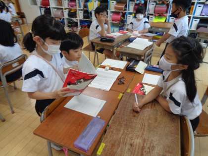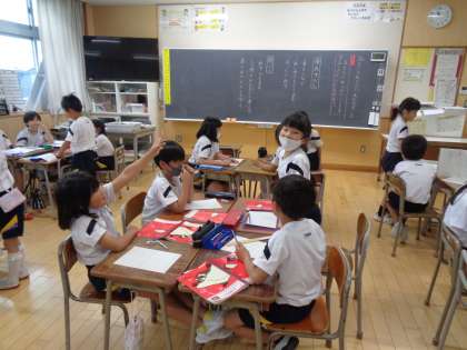 3年生の国語では「もっと知りたい、友だちのこと」の中で、自分の大切なことや体験したことなどを友だちに伝える学習をしています。発表者は聞き手と目をつないで話すことを、聞き手は話し手を見て質問を考えながら聞くことを意識しています。2組の授業では、元気に発表する様子や友だちの発表をよく聞いて楽しそうに質問する様子が見られました。