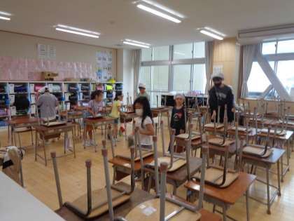 先週の金曜日から1〜6年生が縦割りで行う掃除が始まりました。6年生を中心に1〜5年生が黙々とそうじをがんばっています。3年生もいつも以上に頼もしく、そうじをする姿が見られました。これからも学校をきれいにできるようがんばってほしいです!