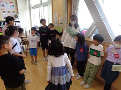 今日の昼休みはわくわく活動がありました。ひまわり班のメンバーで、6年生が考えた遊びを楽しみました。ハンカチ落としや宝探しゲーム、だるまさんが転んだなど、短い時間で様々な遊びをして楽しむ様子が見られました。3年生も上級生や下級生と仲良くなれてとても嬉しそうでした。
