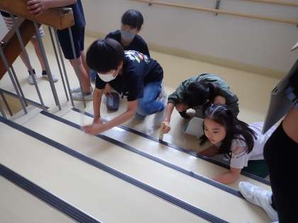 友達と協力し、1段の高さを計ったり、段の数を数えたりしました。