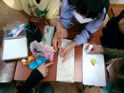 お楽しみ会に向けてドッジボールの対戦の組み合わせを考えています。また、クイズかかりはフォームで、都道府県クイズを準備しています。楽しみですね。