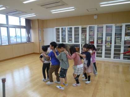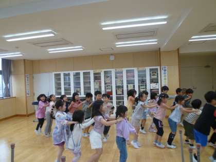 音楽に合わせて、リズムを打ちながら体を動かしました。うまくステップを踏めました。