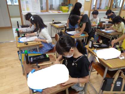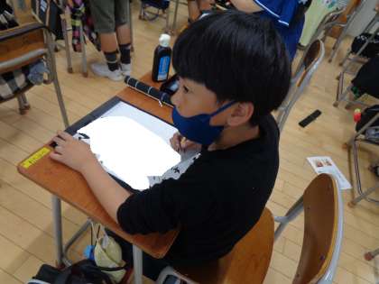 3年生の書写では、毛筆と墨を使って字を書く練習をしています。先週は小筆を使い、自分の名前を書く練習をしました。慣れない筆を使い、小さな幅に文字を書くのは難しそうでしたが、ゆっくり丁寧に練習することができました。