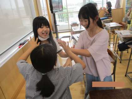 オリジナルの手遊びでリズムを工夫したり、「ヘイ!」とかけ声をかけたりして、とても楽しそうな子供たちでした。