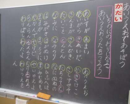 みんなであいうえお歌を作りました。作る中でもたくさんの意見が出て大盛り上がりでした。
