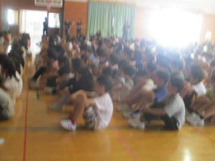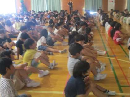 図書委員会の発表を聞きました。今取り組んでいる図書ビンゴのお話を、真剣に聞いていました。