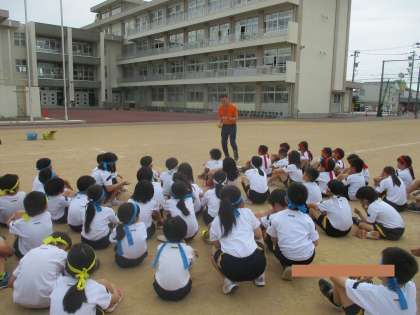 今日は2組の先生が出張だったので、教務の先生に体育に出ていただきました。