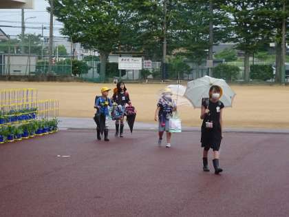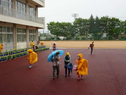 傘をさしている子供たちの中には、傘が裏返ってしまった人もいたようです。