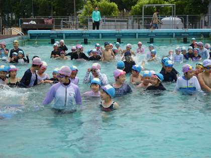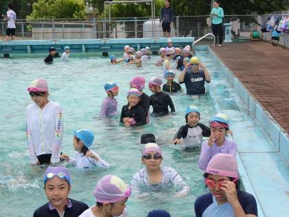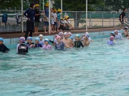 5年生と一緒にプールに入りました。