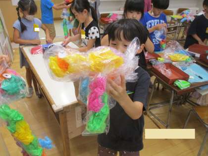 子供たちは色紙をどんどんくしゃくしゃにして、思い思いに袋に入れていきました。