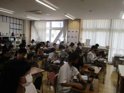 6年生 社会科 歴史の学習 公開日 2023/07/04 更新日 2023/07/04 6年生 いよいよ歴史の学習に入りました。昔の人の暮らしについて、クロムブックや資料集等を用いて調べています。進んで学習に取り組んでいます。